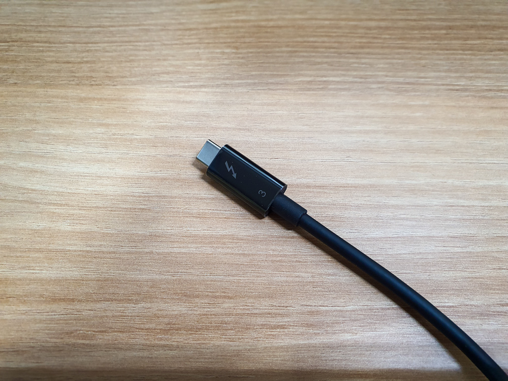 썬더볼트 3 커넥터는 꽤나 고급스럽게 처리가 되어 있습니다. 이음새가 없는 커넥터 모양이어서 내구성도 꽤나 괜찮을 듯 합니다.