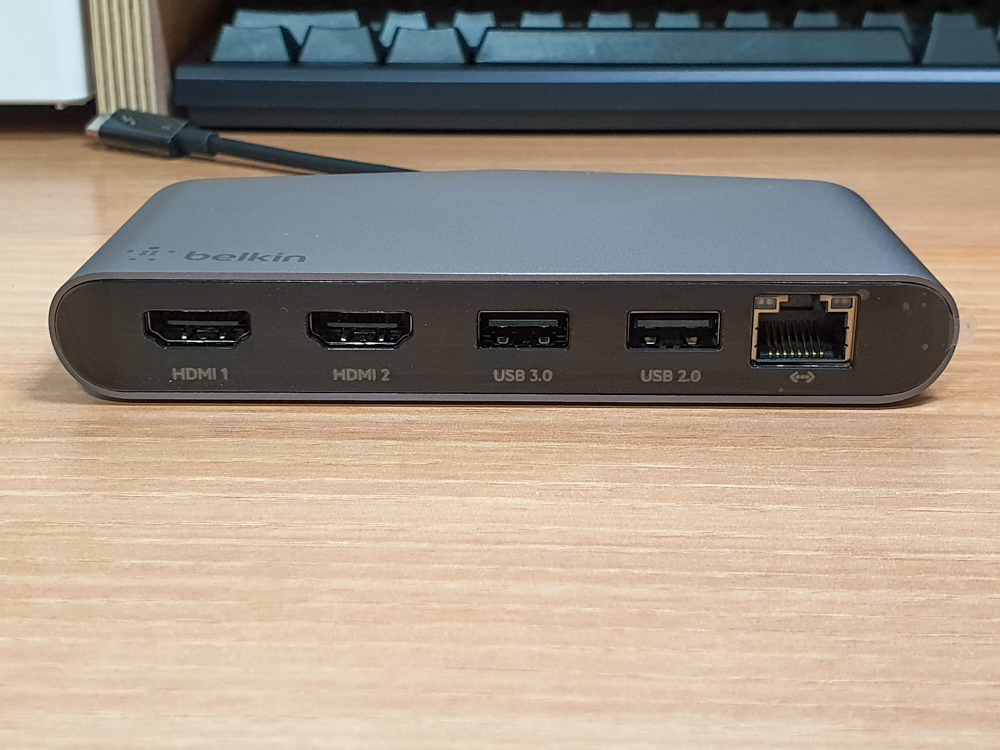 기존 USB-C 허브나 독 같은 경우는 대역폭 때문인지 보통 한 개당 하나의 HDMI 포트만 존재하거나 두 개의 포트가 존재한다고 하더라도 해상도 등의 제한이 존재합니다. 그래서 모니터 두 대를 연결해서 사용할 때는 두 개의 USB-C 허브를 사용하고 있었습니다. 하지만 사용할 때 뺐다 끼웠다 하기도 번거롭고 두 개의 USB-C 포트를 사용하기 때문에 충전을 담당하는 포트까지 포함하면 최소 3개의 포트를 동시에 사용할 수 밖에 없었습니다. 게다가 이 포트들이 한 쪽에 몰려있는 게 아니라 양쪽에 위치해 있기 때문에 자리도 꽤나 많이 차지했죠. 그래서 구입한 게 이 벨킨 썬더볼트 3 독 미니입니다.